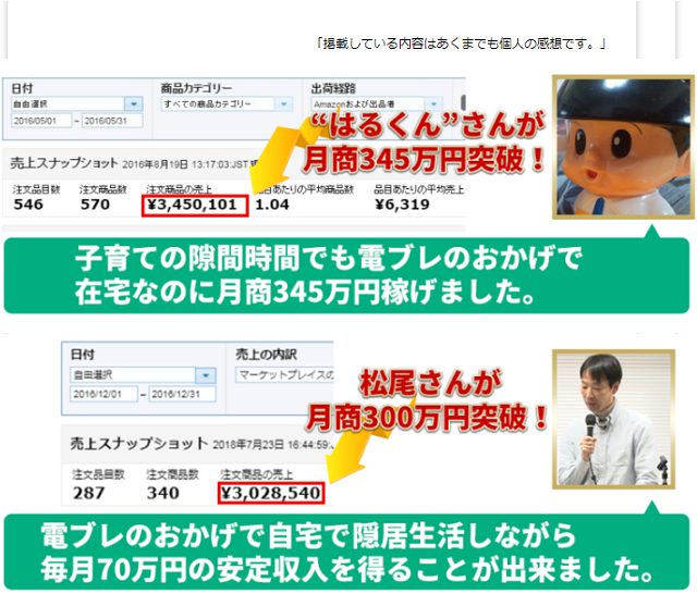 公式サイトでは、多くの有名せどらーの方が電ブレを使った利益報告をしていました。なかには、電ブレのおかげで月商300万円達成した人もいるそうです。