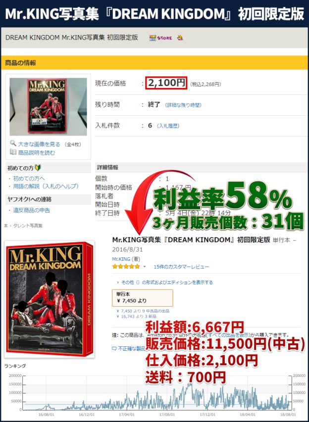 上記の商品の場合は、仕入れ値15,000円のものが、45,000円程度で売れています。仕入れにかかった時間は、わずか数秒です。